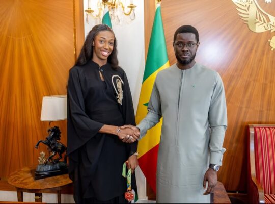 Saly Sarr, présente sa médaille de bronze décrochée aux Championnats du monde d’athlétisme au Président
