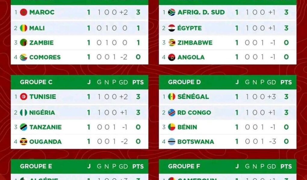 Classement de la CAN après les premiers matchs de poule ! 🏆👏