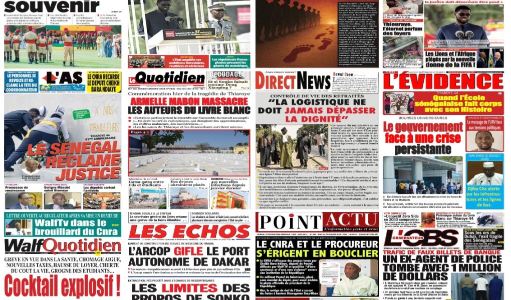 Revue de presse de ce 2décembre 2025 : Emotion de Thiaroye, tensions universitaires et chocs de la CAN 2025 marquent l’actualité développée par les quotidiens sénégalais avec Mamadou LY, ma revue