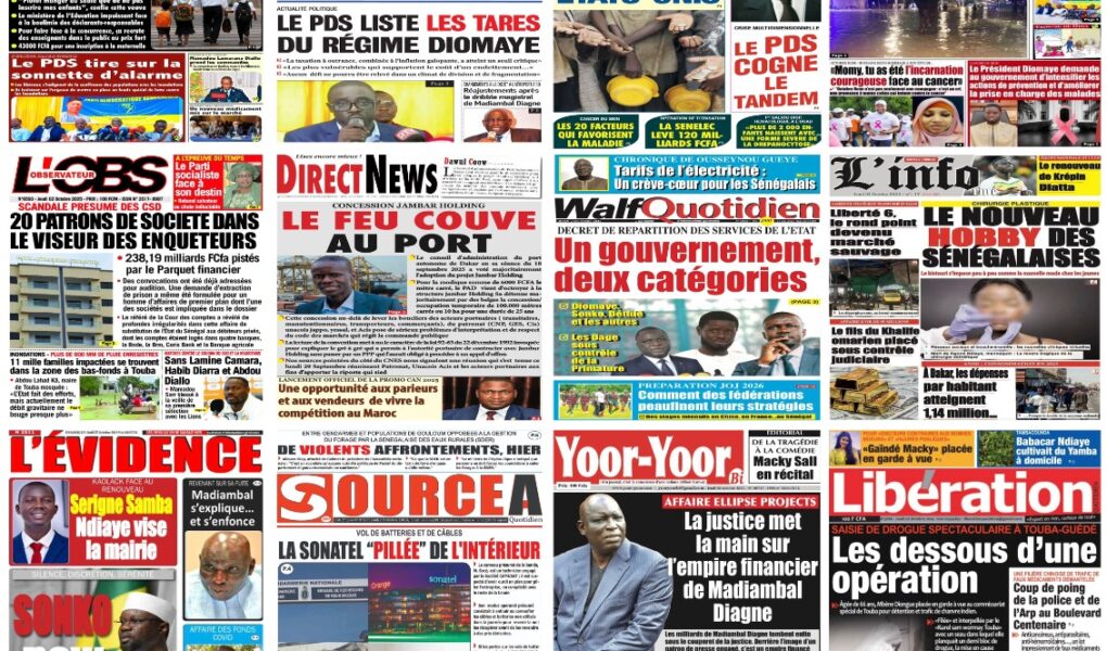Les "UNES" des quotidiens de ce 2 octobre 2025 ( By Mamadou Ly, ma revue de presse)