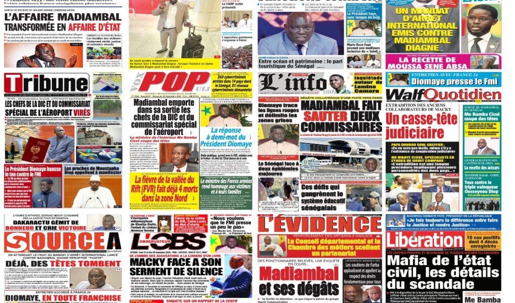 Les « UNES » des quotidiens de ce 29 septembre 2025 ( Par Mamadou LY, Ma Revue de presse)