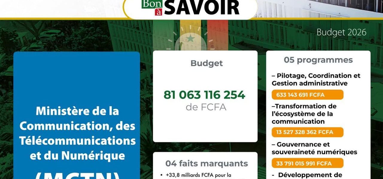Budget 2026 du Ministère de la Communication, des Télécommunications et du Numérique: 81.063.116.254 FCFA