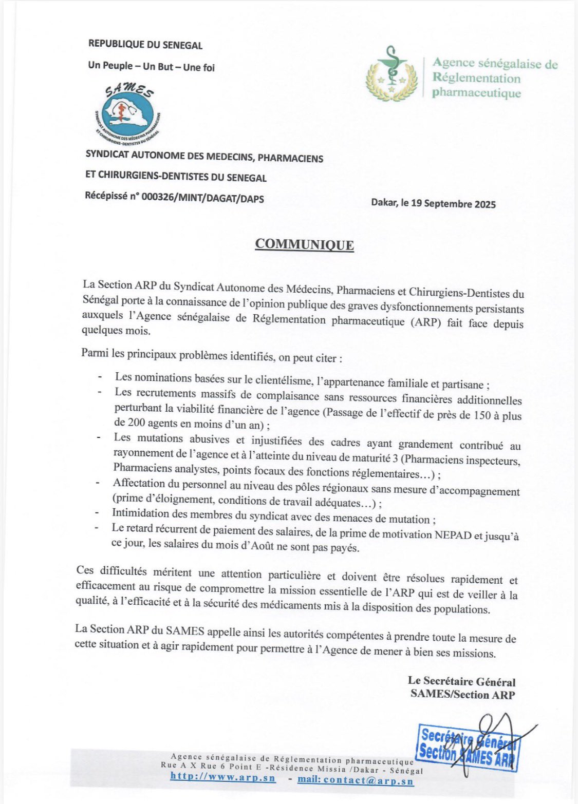 Imaginez : un pharmacien chargé de veiller à la qualité des pilules qui sauvent des vies, mais qui attend encore son salaire d’août. Au Sénégal, l’Agence sénégalaise de Réglementation pharmaceutique (ARP) est censée être le bouclier contre les faux médicaments. Pourtant, ses propres gardiens sonnent l’alarme. Un scandale couve-t-il dans les couloirs de cette institution clé pour la santé publique ?