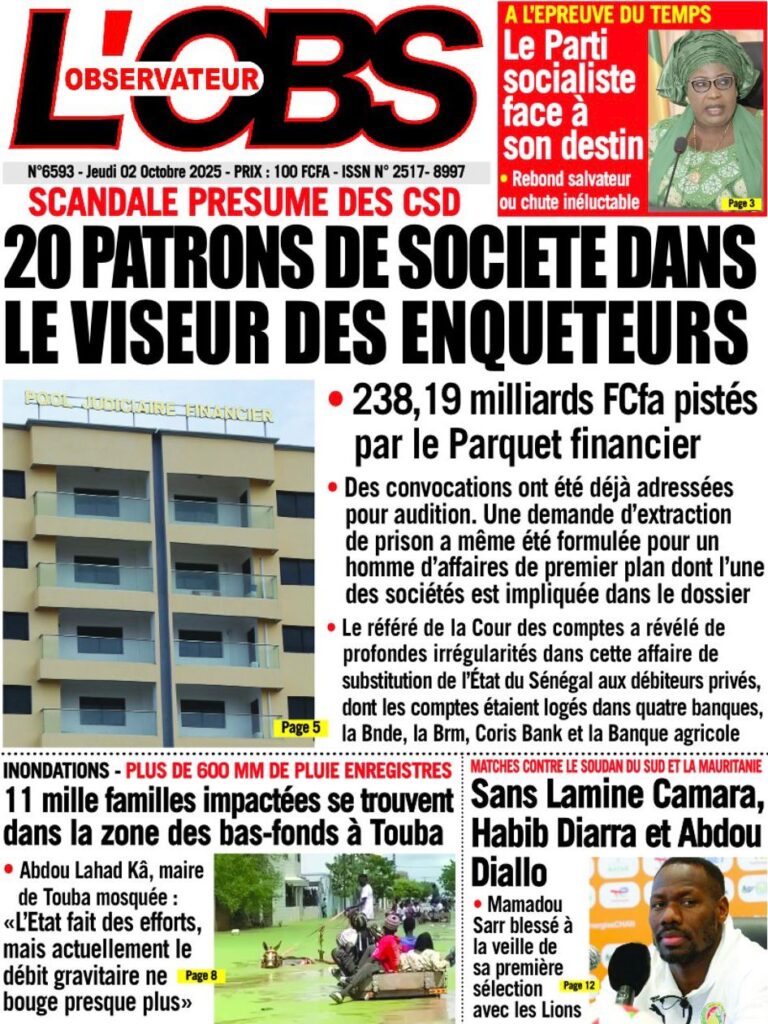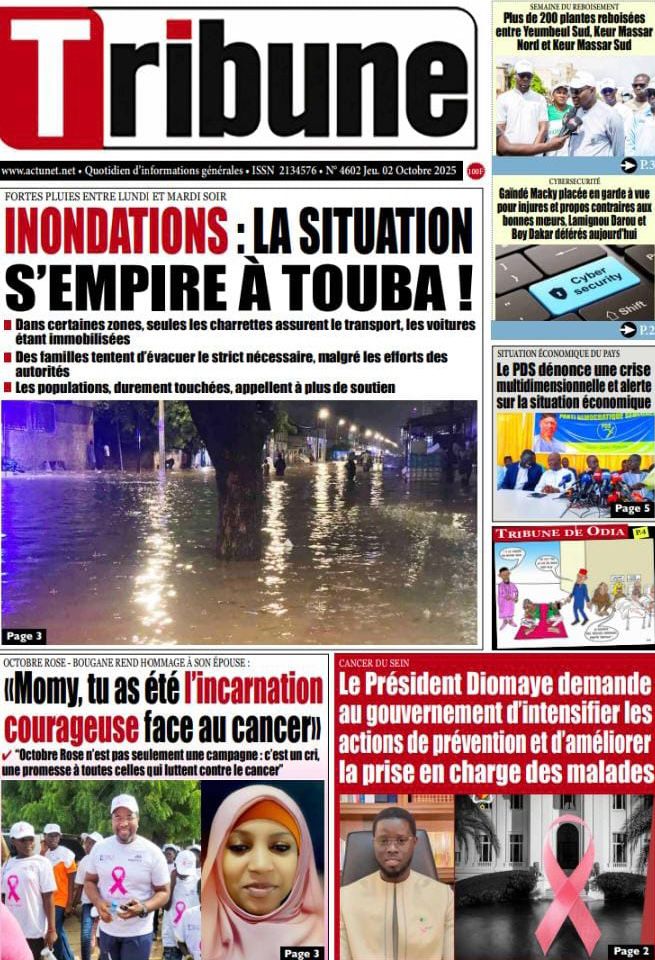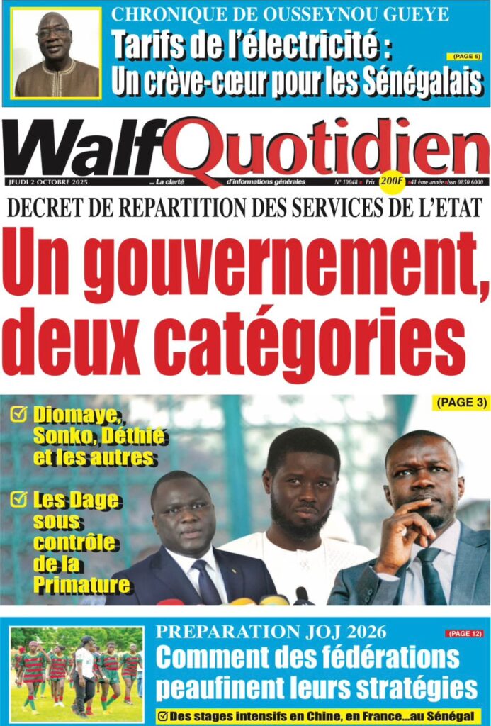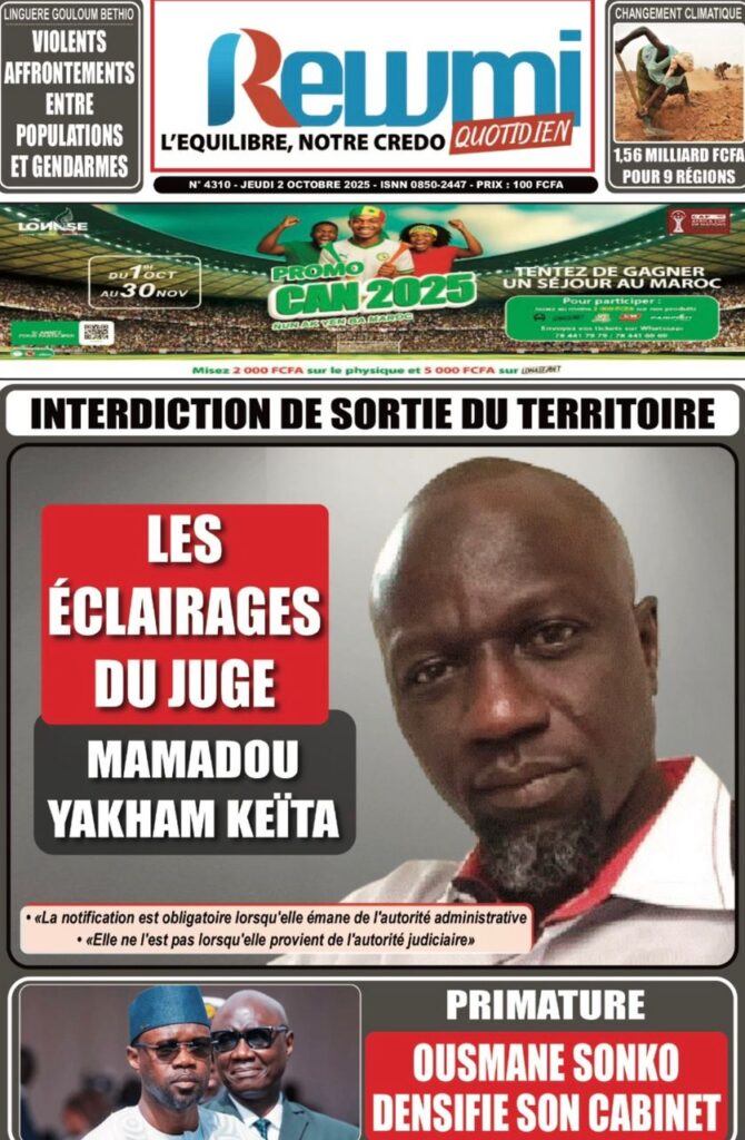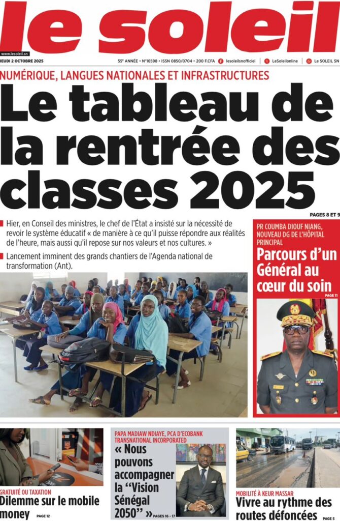 Les « UNES » des quotidiens de ce 2 octobre 2025 ( By Mamadou Ly, ma revue de presse)