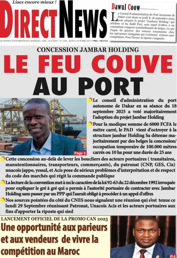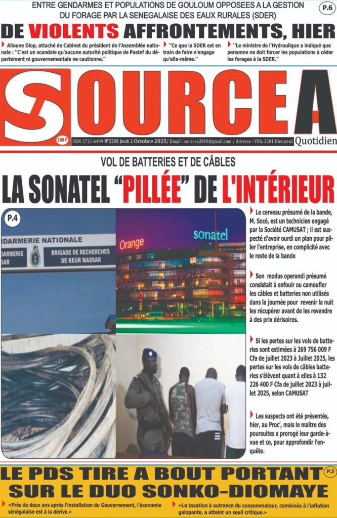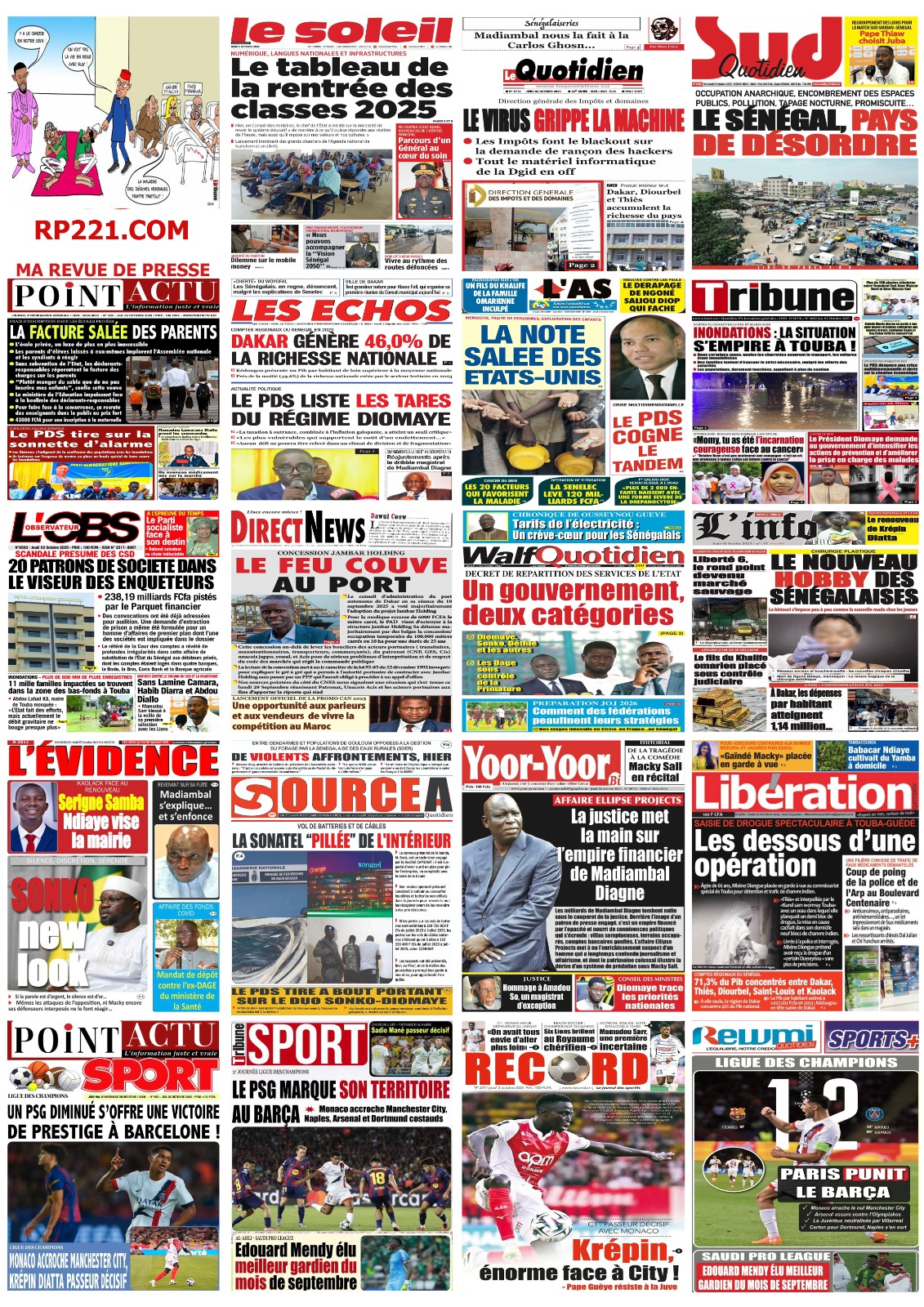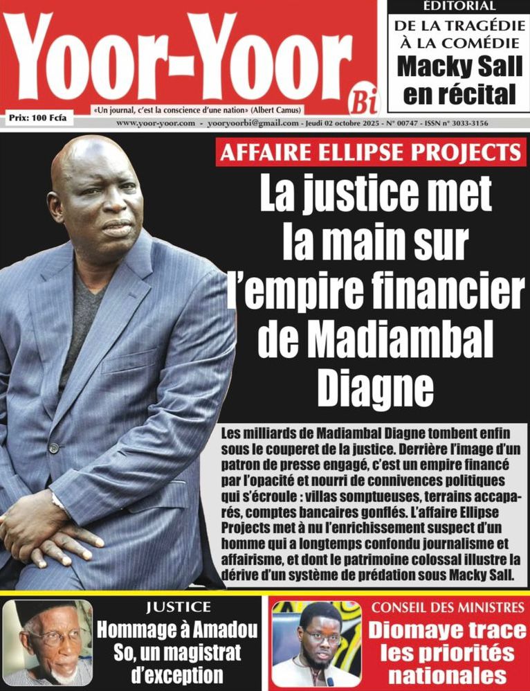 Les « UNES » des quotidiens de ce 2 octobre 2025 ( By Mamadou Ly, ma revue de presse)