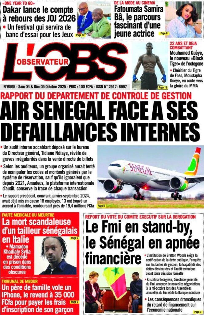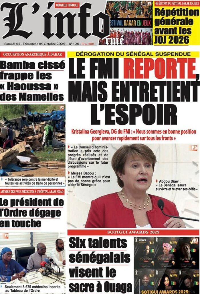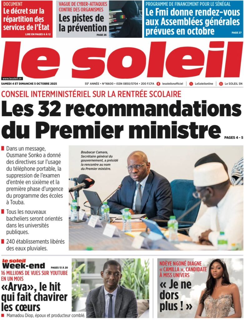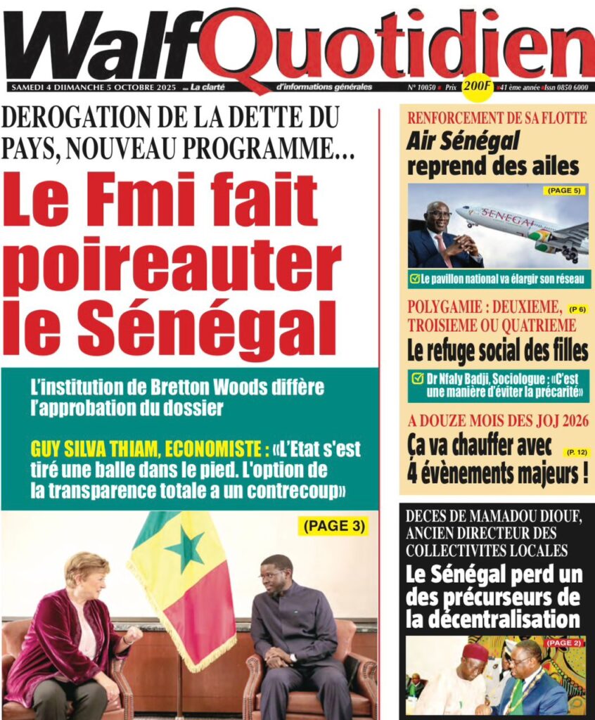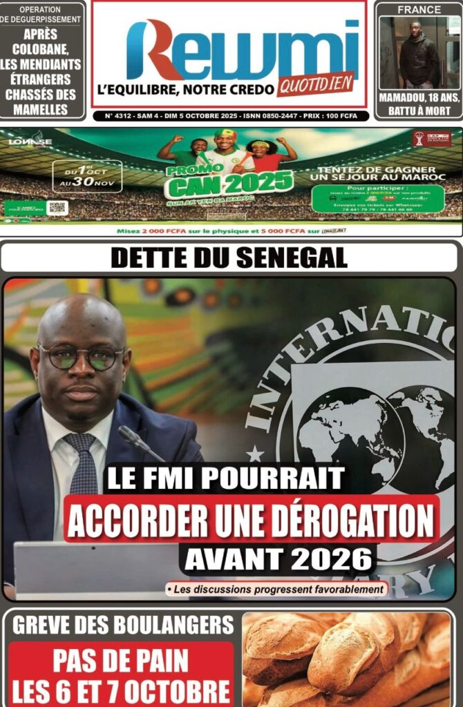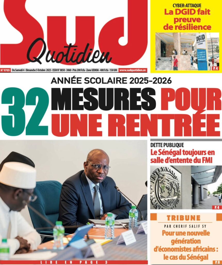 Les « UNES » des quotidiens de ce 4 octobre 2025 ( By Mamadou Ly ma revue de presse)