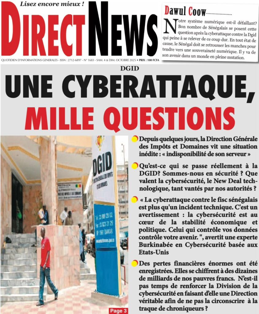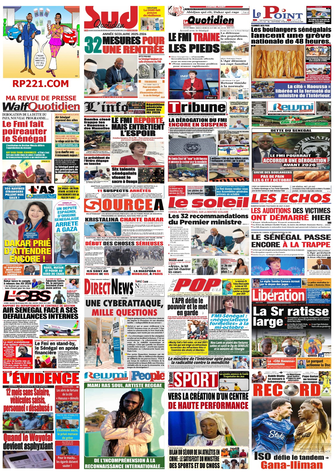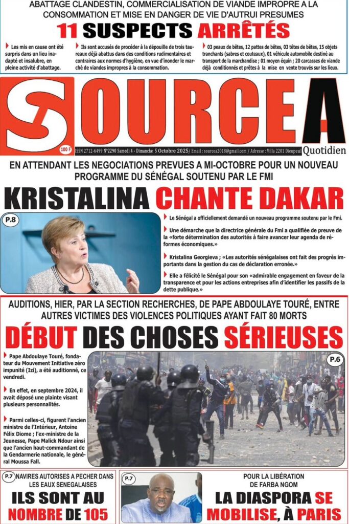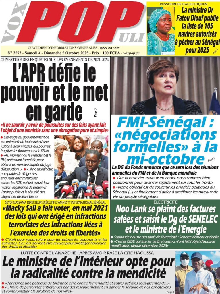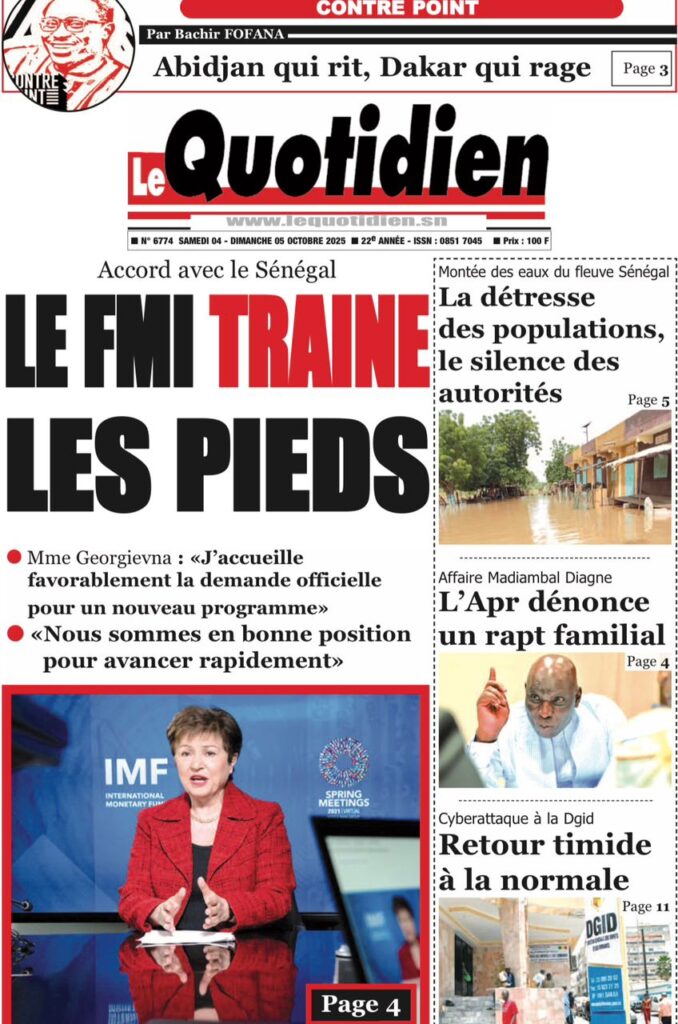 Les « UNES » des quotidiens de ce 4 octobre 2025 ( By Mamadou Ly ma revue de presse)