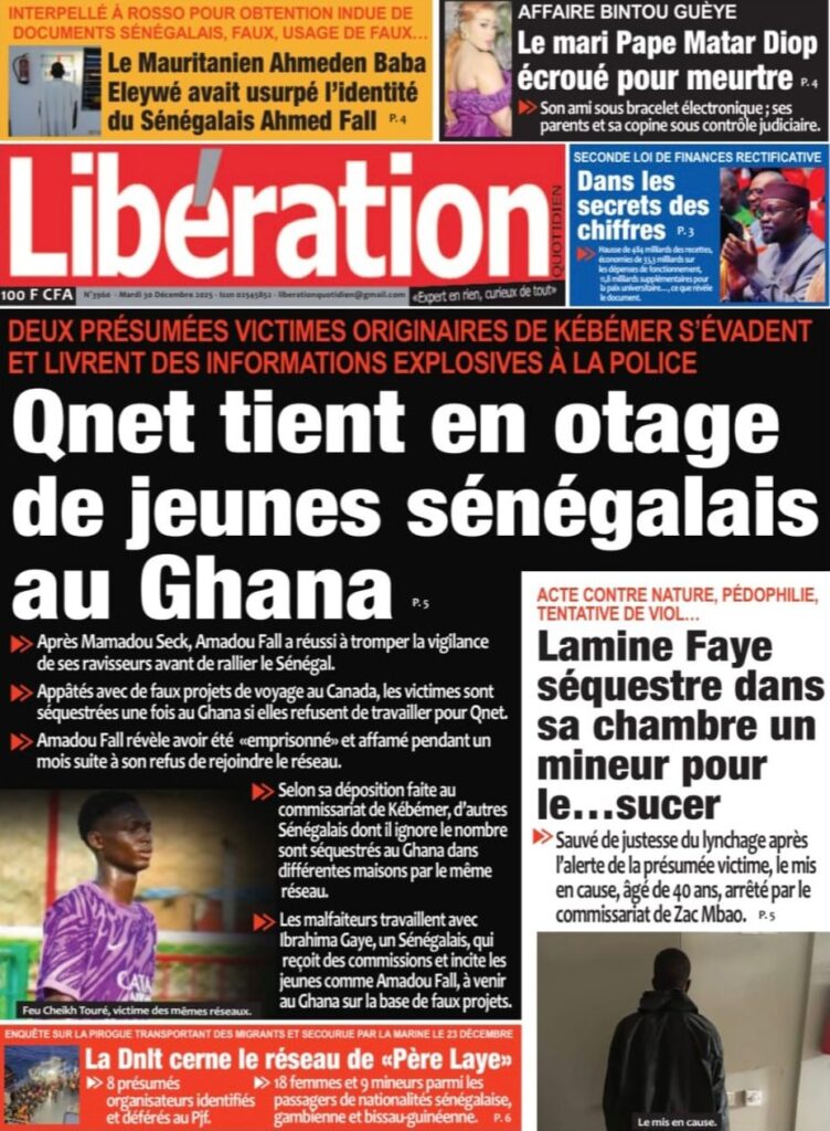 Sur le plan social, l’atmosphère de fin d’année reste tendue. Le Point signale que face à la « guerre des pétards », l’avocat Me Bamba Cissé sévit, s’alignant sur les mises en garde du ministre de l’Intérieur rapportées par Rewmi Quotidien. De son côté, Source A rejoint les préoccupations migratoires de Solo Quotidien en livrant « tout sur un réseau organisé » dont huit membres d’équipage ont été arrêtés.