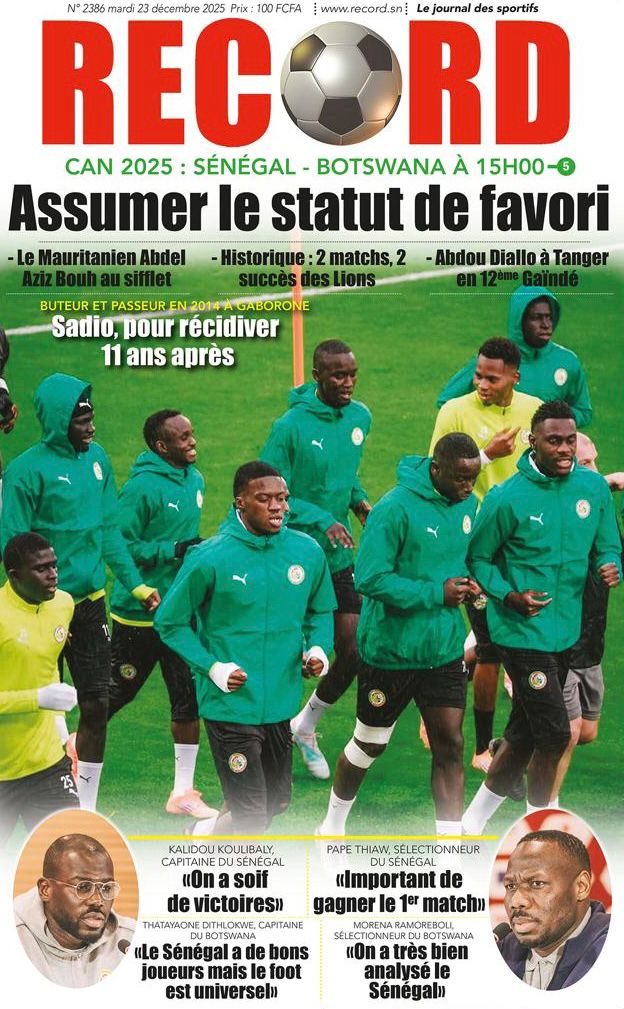 Dans un registre tout aussi passionné, le pays retient son souffle pour l’entrée en lice de ses ambassadeurs sportifs au Maroc. Le journal Solo Quotidien, dans une édition spéciale aux couleurs nationales, s’exclame : « Rugissez ! ». Selon mon confrère de Stades, les Lions de la Teranga affrontent le Botswana cet après-midi pour leur premier match de la CAN 2025. Le journal Le Pop (Vox Pop) revient sur l’état d’esprit du capitaine Kalidou Koulibaly et de ses coéquipiers, qui se disent en mission pour reconquérir le trône africain. Malgré la pression, l’ambiance est à l’optimisme, même si le journal Record nous rappelle la nécessité de rester vigilants face à des adversaires qui n’ont rien à perdre.