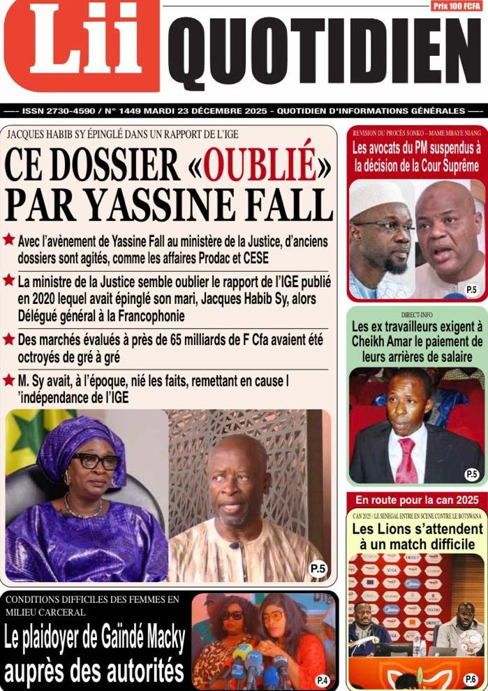 Dans le sillage de cette affaire, le journal Les Échos et mon confrère de Lii Quotidien révèlent des détails troublants concernant un rapport de l’Inspection Générale d’État (IGE) datant de 2020. Selon les informations rapportées, ce document « oublié » mettrait gravement en cause Jacques Habib Sy, l’époux de l’actuelle ministre de la Justice Yassine Fall, pour des marchés de gré à gré s’élevant à 65 milliards de FCFA. Le journal Walf Quotidien revient sur cette coïncidence temporelle et s’interroge sur les implications éthiques d’une telle révélation au moment même où l’appareil judiciaire cherche à se réformer. Cette situation crée une onde de choc au sein de l’opinion, d’autant plus que le journal Kritik souligne que la lutte contre la corruption est devenue le cheval de bataille du nouveau régime.