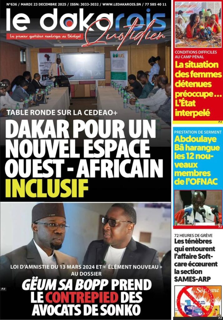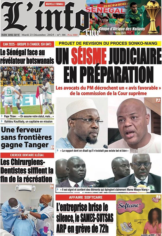 Enfin, cette effervescence nationale ne saurait occulter les réalités sociales parfois difficiles qui persistent dans le pays. Selon mon confrère de L’Info, le secteur de la santé entre en zone de turbulences avec un mot d’ordre de grève de 72 heures décrété par les syndicats SAMES et SUTSAS. Le journal Kritik revient sur ce malaise persistant, tout en mentionnant parallèlement la prestation de serment des nouveaux membres de l’OFNAC, chargés désormais de veiller sur les deniers publics. En somme, entre les prétoires, les chantiers de Casamance et les pelouses marocaines, le Sénégal vit une journée charnière où chaque titre de presse semble dessiner les contours d’une nation en pleine mutation.