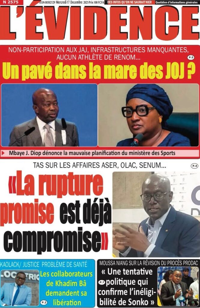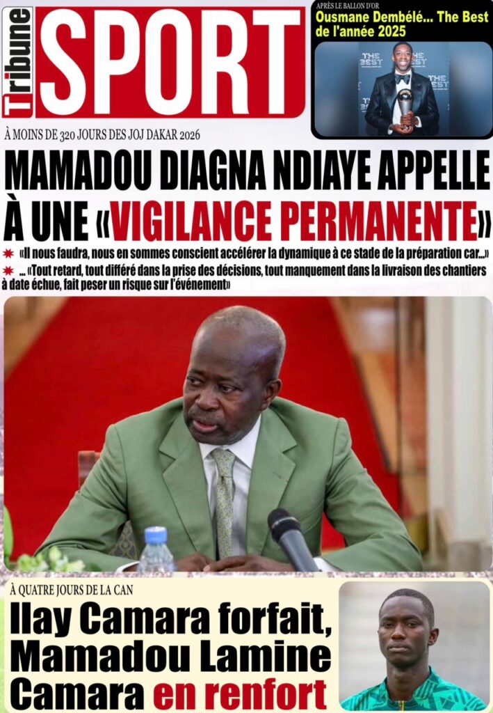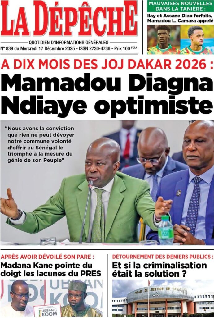 Enfin, le sport apporte une note de ferveur populaire à cette revue de presse. Le journal Record et mon confrère de Stades annoncent la réouverture du stade Léopold Sédar Senghor pour une séance de communion, appelée « Taggatoo », entre les Lions de la Téranga et leur public avant le départ pour la CAN 2025. Sur le plan de l’effectif, le journal Enquête confirme le forfait d’Ilay Camara, remplacé au pied levé par Mamadou Lamine Camara. En ce qui concerne les Jeux Olympiques de la Jeunesse (JOJ) 2026, le quotidien L’AS, rapporte que le président Diomaye Faye a fixé des priorités strictes et des délais rigoureux pour garantir le succès de cet événement international, malgré les doutes soulevés par le journal L’Évidence quant à l’état d’avancement des infrastructures.