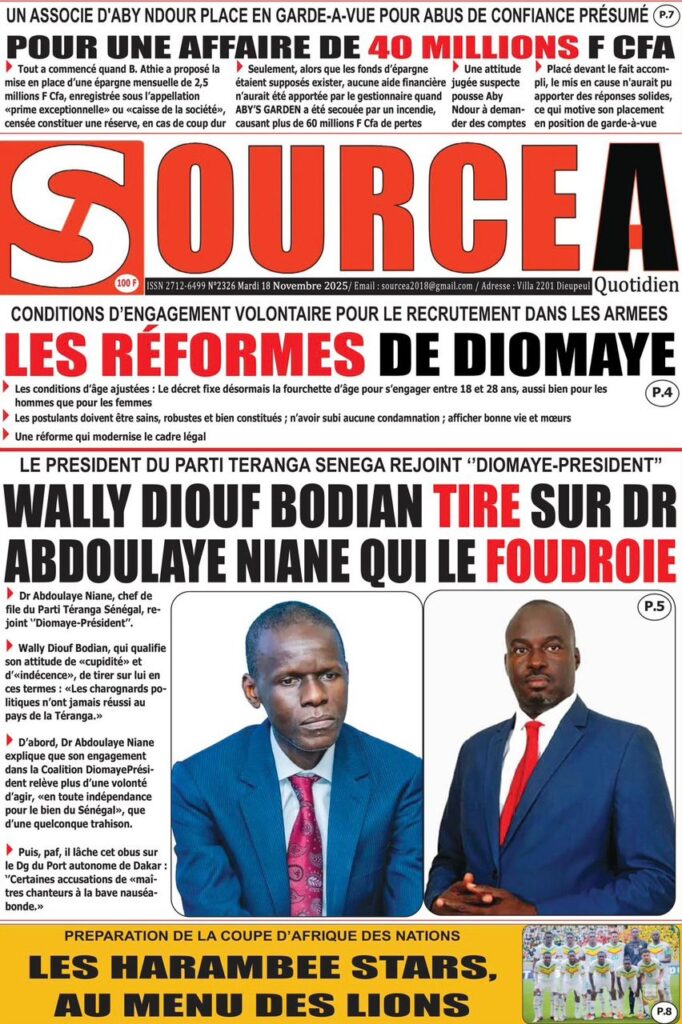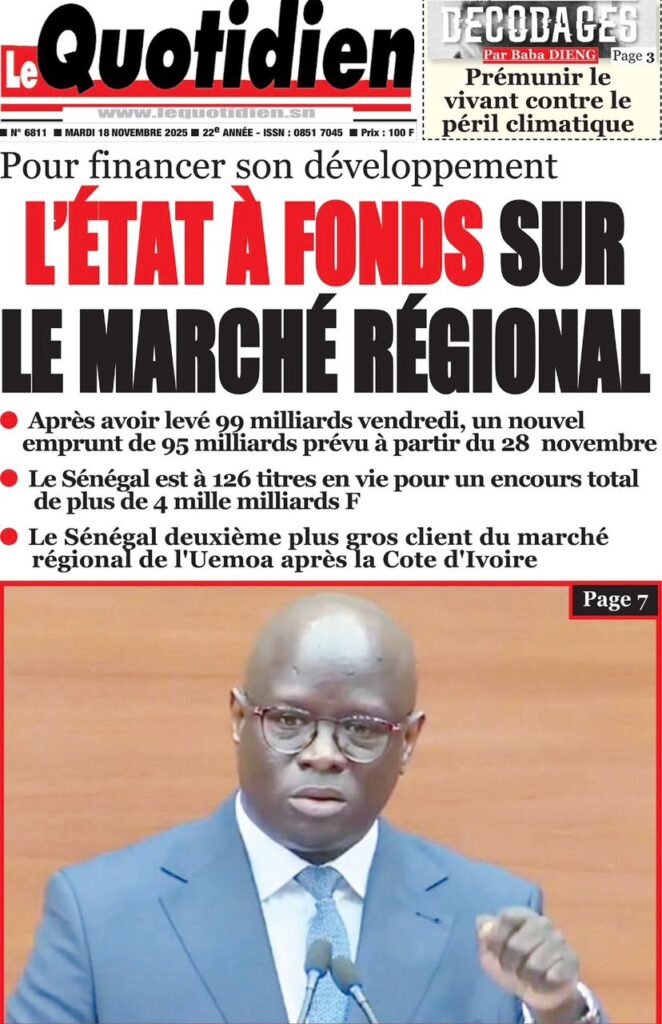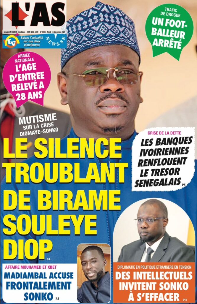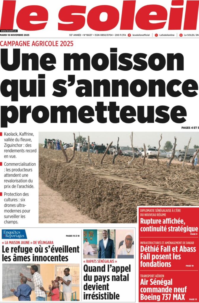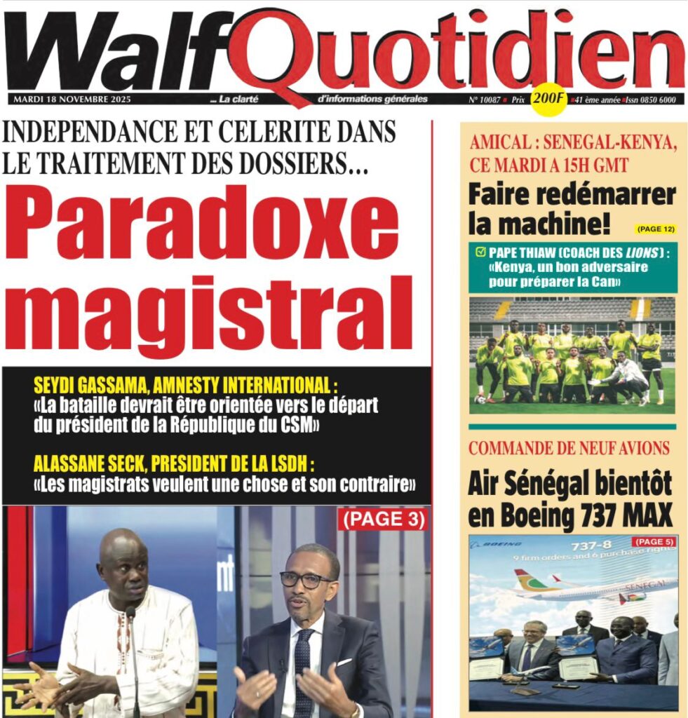 Ce mardi 18 novembre 2025, la presse sénégalaise reflète un pays traversé par de profondes turbulences politiques, des défis économiques majeurs et l’espoir renaissant autour de ses Lions du football. Le fil rouge qui relie presque tous les quotidiens est la crise au sommet de l’État, exacerbée par les tensions au sein de l’ancienne coalition victorieuse.