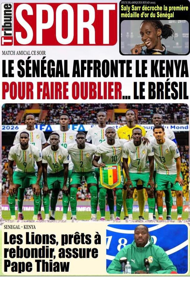 Enfin, le sport ne fait pas exception à la une, avec un focus sur l’équipe nationale de football. Après la défaite amicale contre le Brésil, les journaux sportifs comme Record, La Tribune Sport et Rewmi Sports+ placent le match de ce soir contre le Kenya sous le signe du « Rachat et rectification ». La Tribune Sport titre que le Sénégal doit affronter le Kenya « pour faire oublier… le Brésil », un sentiment que le sélectionneur Pape Thiaw résume dans Point Actu Sport en affirmant : « on doit repartir sur autre chose, c’était une bonne défaite contre le Brésil, leçon sue ». L’objectif est clair : « Faire redémarrer la machine ! » et retrouver la confiance avant la prochaine CAN, comme l’indique Record.
