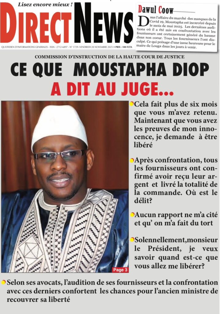 La thématique de la gouvernance et de l’anti-corruption occupe également une place de choix avec le renouvellement de l’OFNAC, l’Office National Anti-Corruption, salué par Sud Quotidien comme l’ouverture d’une « nouvelle ère pour le contrôle public » ; les journaux comme La Tribune et L’Info confirment la nomination de douze nouveaux membres, avec le magistrat Moustapha Ka et l’activiste Birahim Seck respectivement à la présidence et à la vice-présidence, une composition qui témoigne de la volonté de « réinventer l’OFNAC » ; sur un plan judiciaire, Direct News revient en détail sur l’audition de Moustapha Diop devant la Commission d’Instruction de la Haute Cour de Justice, avec ses déclarations au juge, clamant son innocence après six mois de détention et demandant sa libération.