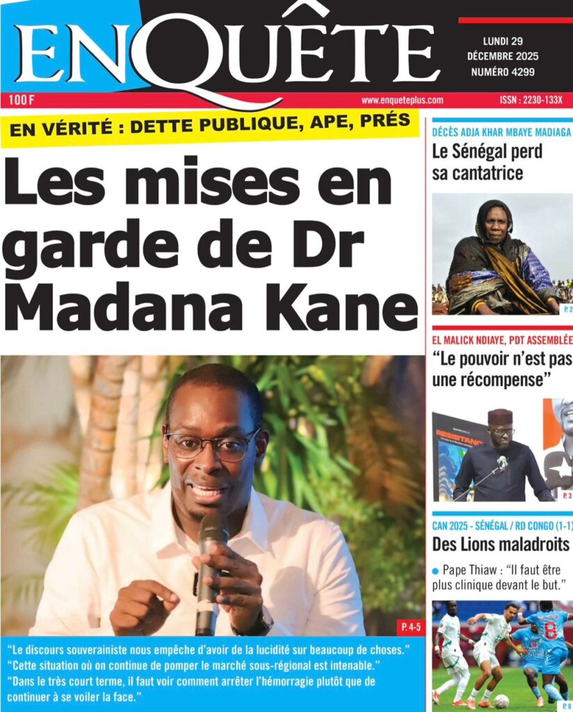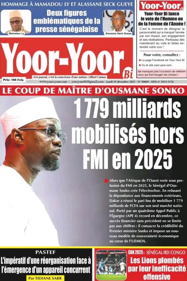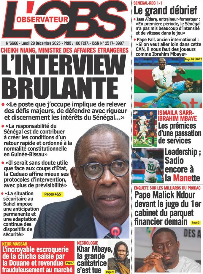 Revue de presse de ce 29 décembre 2025 avec Mamadou LY, ( ma revue de presse)