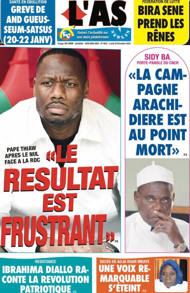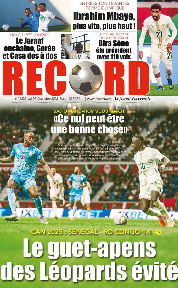 Enfin, le sport vient clore cette revue avec un goût d’inachevé. Au lendemain du match nul (1-1) contre la RDC, Le Quotidien parle d’une « qualif’ reportée » pour les Lions, tandis que L’AS, évoque un « résultat frustrant ». Pour Source A, l’équipe n’a été « ni chair, ni poisson », pointant du doigt les prestations décevantes des cadres comme Ismaila Sarr. Si Record préfère voir le verre à moitié plein en titrant sur un « guet-apens évité » grâce à l’entrée tonitruante du jeune Ibrahim Mbaye, Point Actu Sport note tout de même que les Léopards ont réussi à « freiner » les Lions. Une note positive toutefois pour finir : le monde de la lutte a un nouveau patron, Bira Sène ayant été élu président de la fédération, une « victoire méritée » saluée par L’AS et l’ensemble de la presse sportive.