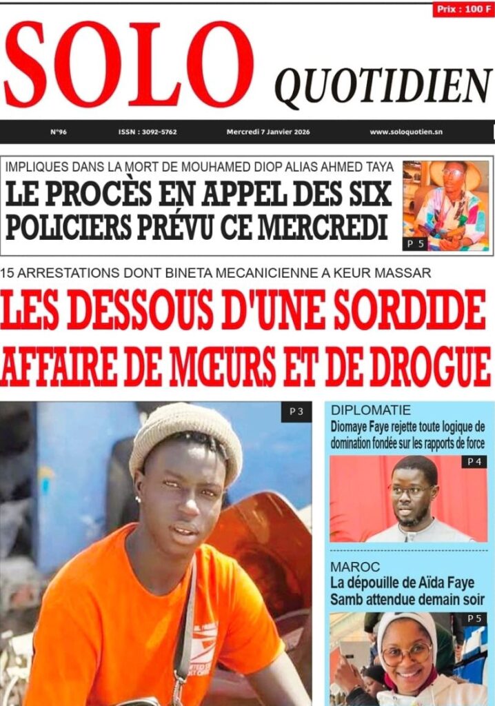 Loin de ces joutes politiciennes, la chronique judiciaire et les faits divers occupent une place prépondérante. Libération lève le voile sur « Le scandale au grand jour » de l’affaire dite de « Bineta Mécanicienne » à Keur Massar, exposant un réseau mêlant mineurs, drogue et prostitution. Sur ce dossier brûlant, le journal Solo Quotidien apporte des précisions chiffrées, faisant état de « 15 arrestations dont Bineta Mécanicienne » dans cette sordide affaire de mœurs. Toujours au chapitre judiciaire, Solo Quotidien nous informe également que le procès en appel des six policiers impliqués dans la mort de Mouhamed Diop est prévu ce mercredi, une date attendue par la famille de la victime. Dans un registre plus intime et douloureux, Le Témoin consacre un dossier poignant à la maison familiale devenue le « théâtre des drames sociaux », où l’inceste et les violences invisibles brisent des vies dans le silence.