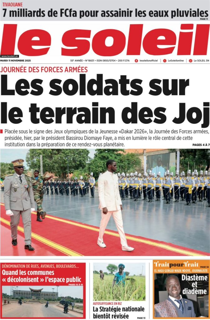 - En parallèle, l’armée est mobilisée pour un autre défi national : les Jeux olympiques de la Jeunesse (JOJ) Dakar 2026. Le Soleil et Tribune soulignent le rôle stratégique des Forces de Défense et de Sécurité, le Président ayant débloqué « 100 MILLIONS F CFA CASQUÉS » (SourceA) pour les soutenir en tant que partenaires des Jeux.